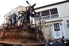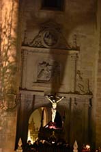 Lo que sí se perdió este año, y a nosotros nos sorprendía al no tener conocimiento de ello, fue la supresión de la parada que se hacía en la calle Dolores, a la altura del Callejón de Méndez, en la que se daba lectura a una emotiva leyenda en torno a esta imagen: la del Cristo del madero. Desconocemos si ha sido algo puntual o si ha sido decisión de la nueva Junta de Gobierno el suprimir ese momento. Añadir también que la estación de penitencia se realizó con el acompañamiento musical de la agrupación Camerata Bastetana, interpretando música de capilla, lo que da una singularidad y caracterización propia a esta cofradía. |