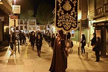 La Cofradía del Silencio marca la noche del Viernes Santo en Baza, con una Virgen de los Dolores que arrastra tras de sí a numerosos fieles y devotos. En torno a las once de la noche, la actividad cofrade se concentra en la calle de los Dolores, donde la Cofradía de Silencio congrega a sus hermanos, antes de iniciar la salida procesional de la madrugara del Viernes Santo. El motivo no es otro que la Iglesia de los Dolores es la sede de su Titular, durante todo el año, y el lugar donde permanecen también los enseres de la cofradía, por lo que es desde allí desde donde parte un desfile previo al de la propia estación de penitencia. Hermanos y hermanas, con la cabeza descubierta, se dirigen en dos filas hasta la Iglesia Mayor, punto de inicio de esta procesión. |