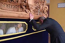 Al finalizar la procesión, y previamente al habitual reparto de las flores del trono entre los asistentes a la procesión, la Hermana Mayor quiso tener un reconocimiento para con Francisco Javier Espín Ballesta, a quien se quiso agradecer los numerosos años que ha estado como capataz de esta Cofradía, en cada noche de Viernes Santo Agradecer, finalmente, la cesión de las bonitas imágenes de calle que acompañan a este comentario, por parte del fotógrafo bastetano Carlos Cano. |