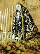 | La bella imagen de Sánchez Lozano luce en su máximo esplendor, vestida del luto más riguroso, mientras deja ver el dolor de una Madre en un día tan significativo como el Sábado Santo, acompañado de esa belleza que emanan las imágenes de Salzillo y que esta Virgen transmite de forma especial. | ||||||||||||||||||||||||||||||||||||||||||||||||||||||||||||||||||||||||||||||||