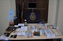 Durante meses los agentes han recopilado datos y pruebas y practicado numerosas actuaciones policiales, que han posibilitado la identificación de los cuatro integrantes del grupo. Finalmente y en fechas navideñas los policías entraron en los dos domicilios investigados, ubicados en la localidad bastetana, interviniendo 38.922 euros en efectivo en billetes fraccionados, 323 gramos de cocaína en roca, 26 gramos de heroína en roca, una pistola taser, dos armas largas de fuego, siendo éstas una escopeta y un rifle con mira telescópica, 44 cartuchos de distinto calibre, 31 balas, utensilios para la fabricación de papelinas de droga y dos vehículos, uno de ellos de alta gama. Y procedieron a la detención de las cuatro personas Las investigaciones han sido llevadas a cabo por el Grupo Operativo Local de Policía Judicial de la Comisaría de Baza, siendo reforzados por la Unidad de Seguridad Ciudadana de la misma Comisaría y la Unidad de Guías Caninos de la Comisaría Provincial de Málaga para el registro de las viviendas. Los detenidos han sido puestos posteriormente a disposición de la autoridad judicial. |
