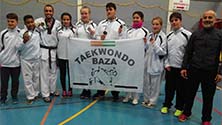 Tres oros y tres platas para el Club Taekwondo Baza en el campeonato andaluz de las categorías senior y cadete. Una esta primera cita deportiva del año, en la que se ha contado con 280 competidores de 50 clubes de nuestra territorial, celebrada el pasado sábado, 22 de enero, en la localidad sevillana de Bormujos, en la que se dieron cita los clubes andaluces con sus mejores deportistas, en la disputa por conseguir una plaza para el campeonato de España por selecciones. El club Taekwondo Baza consiguió 3 oros, uno de Aziz Boudiar en sénior y dos de Moisés Herrera y Yasmina Deniz, en cadete, lo que ha valido a estos deportistas que Aziz consiga su pase para el campeonato de España Absoluto, que se celebrará el 17 y 18 de febrero en Madrid, y Moisés Herrera y Yasmina Deniz estén en el nacional cadete a celebrar los días 4 y 5 de marzo en una sede aún por determinar. Las 3 platas fueron para Mayara Lowell, Jordi Maestra en cadete y Eireann Williams en sénior. Ricardo Gómez Guirado y Manuel Martínez Marín también en cadetes y con una actuación más que notable formaron parte del equipo, siendo ocho los participantes del club bastetano. |