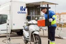 | Para pasar la ITV, el propietario o propietaria del vehículo debe presentar el Permiso de Circulación y la Tarjeta de Inspección Técnica. Los principales puntos que se revisan durante la inspección son: Identificación del vehículo, Acondicionamiento exterior, carrocería y chasis, Alumbrado y señalización, Frenos, Dirección, Ejes, ruedas, neumáticos y suspensión, Motor y transmisión, Velocidad y Emisiones contaminantes: ruido. La periodicidad con la que deben pasar inspección los ciclomotores, es bienal para los que tienen más de tres años, tiempo hasta el que están exentos de este trámite, pro primera vez. |