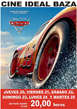 El Salón Ideal ofrece hoy un nuevo estreno cinematográfico con la película "Cars 3". Una película que se estrenará en la tarde de hoy jueves y que podrá verse hasta el próximo martes 25, con una única sesión a las ocho de la tarde. Cars 3 es una película norteamericana, de las denominadas de animación y con una duración de 102 minutos, un producto más de Pixar Animation Studios, de la distribuidora Walt Disney Pictures y dirigida a todos los públicos. |