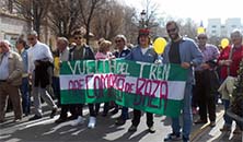 Junto a las peticiones de AVE Soterrado, de reconexión por Moreda y de la variante de Loja, han sonado con fuerza por las calles del centro de Granada la petición por la vuelta del tren a Baza, la reapertura de la línea férrea Guadix Baza Almanzora Lorca tras más de 32 años cerrada, y la solicitud al Gobierno de una partida de un millón de euros en los Presupuestos Generales del Estado de 2017 para el estudio que posibilite dicha reapertura. Portando prendas originales de los años 70, pertenecientes a la última Jefatura de la estación de tren de Baza (gorras, bocinas y trompetillas de avisos, etc..), vecinos de Baza y de otros municipios de la comarca como Caniles y Zújar, han reivindicado también la bondades de la vuelta del tren a las comarcas del norte granadino y almeriense, afirmando que está aquí una de las claves para la mejora de las infraestructuras en todo el sureste peninsular, en especial la apertura de Granada y las comarcas orientales de Andalucía hacia las zonas más prósperas de Murcia, Comunidad Valenciana y Cataluña. |