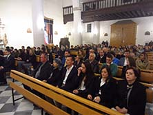 José Ramón Ibarra Mañas pregonó a la Cofradía de la Esperanza. La Iglesia de San Juan se vestía de gala en la noche del pasado sábado, para acoger el pregón de la Cofradía de la Esperanza, a cargo del actual Vicehermano Mayor, José Ramón Ibarra Mañas, quien también es capataz del paso que procesiona el Domingo de Ranos con Jesús de la Paz y la Borriquilla, al que acompañaban en la zona del altar las imágenes de todos sus Titulares. Previamente, se procedió a la presentación del cartel de la Hermandad para este año, momento que contó con la presentación de la Vocal de Juventud, María Maestra y en el que se daba a conocer el lienzo realizado por Javier Mateos y que representa a Jesús de la Paz contemplando la llegada del cortejo del Domingo de Ramos a su Casa de Hermandad. El propio autor se encargaba después de explicar cómo realizó esa obra y los motivos que le inspiraron para ello. |