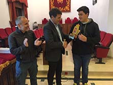 El alcalde bastetano recibe al taekwondista Moisés Herrera, tras su reciente proclamación como campeón de España. El actual campeón de España cadete de taekwondo, el joven bastetano Moisés Herrera, ha recibido del alcalde de Baza, Pedro Fernández, un pequeño reconocimiento por sus méritos deportivos, en concreto por sus últimas victorias que le han valido el título de campeón de España. |