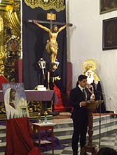 Muchas gracias por acompañarme en un día tan importante para mí. Pero sobre todo quiero dar las gracias a mi familia, la cual tengo hoy aquí. A mi mujer Vero. Muchas gracias cariño por todas y cada una de tus palabras en mi presentación. Pues sé de sobra, que te salen del corazón. Quisiera agradecerte delante de todo el mundo, tu apoyo incondicional y tu prestancia conmigo, durante los días en los que le daba forma a este pregón y me quedaba atascado y tú me ayudabas a seguir escribiendo. Darte las gracias por ser mi otra mitad y por quererme tanto y por enseñarme lo que es amar incondicionalmente. Pero sobre todo, GRACIAS por lo que para Agosto, me vas a dar. A nuestro bebe. TE QUIERO Y TE AMO CARIÑO. Y muchas gracias también a la niña de mis ojos, mi hija Marta. Por despertar en mí sentimientos que jamás había sentido. Por quererme como a un padre y por despertarme siempre una sonrisa en cada momento. Y gracias también a mis amigos más allegados, por apoyarme en todo lo que hago y sobre todo por ayudarme a conseguir mis sueños. Esta noche quiero contaros un secreto…. el de por qué estoy yo hoy aquí. Llevaba varios años dándole vueltas a eso de pregonar a mi Hermandad, pero nunca terminaba de decidirme y dejaba paso a otros que sí lo estuvieran o se sintieran preparados para ello. Pero este principio de verano pasado, fue muy duro para mí y mi familia. Y es que tras la inesperada y traumática perdida de mi cuñado Juanra, pocas semanas después poco faltó para que volviera a ocurrir lo mismo con uno de los dos pilares fundamentales de mi familia, mi padre. En esos días me di cuenta de lo poco que faltó para que Él nunca hubiera podido verme, en un día como el de hoy. Es por ello que TÚ PAPÁ, eres el detonante final, para que yo hoy esté aquí. Y es por ello también que este pregón te lo dedico a ti Y va por ti Papá. ¡¡TE QUIERO!! Pero las gracias es justo darlas a partes iguales, por lo que también se las he dar entonces, a mi madre. Gracias por ser la mejor madre del mundo. Por toda tu ayuda siempre, por preocuparte, muchas veces hasta en exceso, de que todo, salga de la mejor manera y porque sin pedírtelo si quiera, de ti salga echarnos una mano. ¡¡GRACIAS MAMÁ!! ¡¡TE QUIERO!! Gracias a los dos por la educación y los valores que nos habéis dado. Pero para estos menesteres, gracias por educarnos en la Fe Cristiana y por, desde la cuna, hacernos partícipes de vuestra vida cofrade, que a la postre y cada uno a su manera, hemos seguido y sabido tener, mis hermanos y yo. Hoy también cumplo mi palabra para con un amigo, que un día me pregunto, que para cuando me vería hacer un pregón. Tal y como él lo hizo…. pues SORI, amigo, aquí me tienes y este pregón, hoy también va por ti. Quien me conoce, sabe que mi vida está ligada a la Semana Santa, desde el día en el que nací. Desde ese mismo instante mis padres ya me hicieron “Hermano” de su Cofradía, la de la Soledad, mi “hermandad de cuna”. En ella di mis primeros pasos como cofrade y mis primeros recuerdos son rodeados de faroles, baterías, alicates o hábitos, mientras mis padres trabajaban y preparaban todo junto al resto de sus compañeros de Junta, la Junta de Mari y Ricardo. O vestido de penitente con mi túnica blanca del Resucitado, acompañando a la Cruz Guía cada Miércoles Santo y Domingo de Resurrección. Después pasé al hábito negro, acompañando ya al estandarte de la Cofradía, para con el paso de los años, pasar a las filas portando un farol. Cosa que sigo haciendo hoy en día, cada Miércoles Santo junto a mi hermana Teresa. En “La Soledad” pasé por todo prácticamente. Además de penitente como ya he contado, también he sido “horquillero del Resucitado”, “costalero de la Virgen” y cuando se me necesitó, “horquillero del Cristo de la Misericordia”. Pero a los 13 años se topó en mi camino una pasión que dio pie, a toda una vida llena de “Amor y Esperanza”, la música. Fue a través de ella, como yo llegué a esta Cofradía, como miembro de su Banda de C.C y T.T “Ntra. Sra. de la Esperanza”. Ahí fue donde comenzó una nueva andadura cofrade que espero conseguir trasmitiros. Y es que 21 años dan para mucho. Muchos momentos buenos y otros no tanto, pero como en la vida, de las cosas malas hay que saber sobreponerse y esta Cofradía no iba a ser menos. Yo llegué a una Cofradía idílica, en su mejor momento. Toda la vida de Hermandad se encontraba en un “boom” en todos los aspectos, costaleros, penitentes, participación de hermanos… y prueba de ese buen momento fue hasta donde se llegó con la banda en tan solo cuatro años. Ser apadrinados por la Banda del “Stmo. Cristo de las Tres Caídas de Triana” e incluso ser la primera banda de fuera de la propia Hermandad de la “Esperanza de Triana”, que dio un concierto, previo pasacalles por la Calle Pureza, en la mismísima Capilla de los Marineros. Y también resaltar la grabación de un disco, editado en los mejores estudios de grabación del momento y cuya venta fue tal, que se tuvo que lanzar hasta tres veces. Durante muchos años hubo personas destacadas y por todos conocidas, en la vida de la Hermandad. Y está claro que su trabajo, tiempo y también su dinero, han hecho mucho por esta Cofradía. Pero si una cosa he vivido yo aquí, es que a pesar de la ayuda de nadie, esta Cofradía es lo que es, en su gran parte, gracias al trabajo incansable de sus hermanos. Porque por todos es sabido, la de años en los que se han montado casetas, hecho Cruces de Mayo, venta de varias loterías, sorteos y rifas al año, Loterías de Navidad y de “El Niño” y por supuesto, los ingresos que generó la banda en aquellos años. Todo eso lo he vivido y trabajado yo, al igual que hoy en día, para que ahora venga “nadie” a decir, “me los llevé porque son míos…” ¡¡Venga ya!! En estos 21 años e igual que me pasara en “La Soledad”, he estado para mi Herma