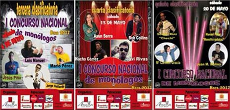 Ya se conocen los participantes de las siguientes sesiones clasificatorias del I Concurso Nacional de Monólogos que se celebran cada sábado en el Restaurante Alamillos. Continúa el éxito que se alcanzó ya en la primera jornada de este Concurso Nacional, en el que cada noche de sábado se dan cita un grupo de monologuistas profesionales, en busca de clasificarse para la gran final, que tendrá lugar en el Salón Ideal, para cerrar el certamen. |