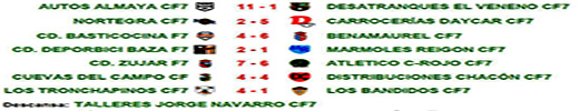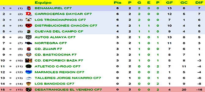 | Trofeo "Construcciones Veneno" de la VII Liga de la As. Dep. de F7 de la Zona Norte tras la jornada 1: | |||||||||||||||||||||||||||||||||||||||||||||||||||||||||||||||||||||||||||||||||||||||||||||||||||||||||||||||||||||||||||||||||||||||||||||||||||||||||||||||||||||||||||||||||||||||||||||||||||||||||||||
