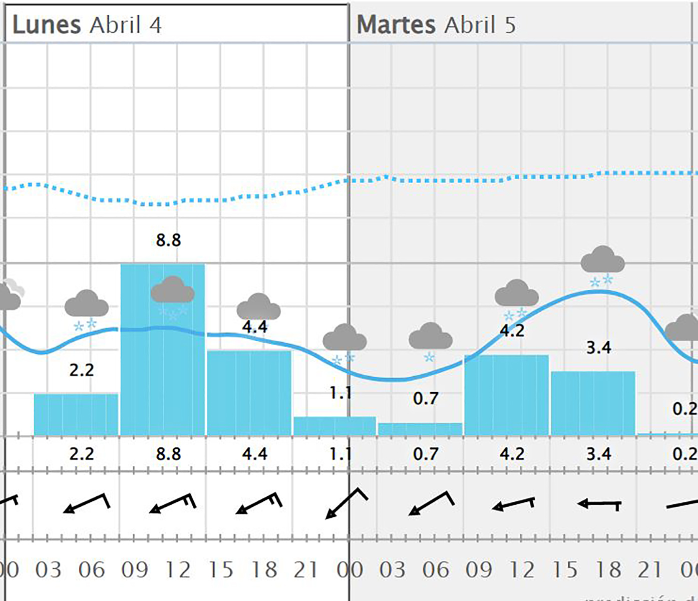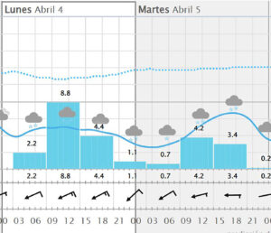 Hay otra situación que es de gran importancia para los parajes serranos, caso de la nieve que ya hemos tenido ocasión de ver y que parece que retornará el próximo lunes, de forma destacada, según los pronósticos que nos hablan de su llegada a partir de las dos de la madrugada, y en cotas superiores a los 1.200/1.300 metros, con una precipitación sobre los 2,2 mm, pero que irá a más y llegará a los 8,8 mm a las 08:00 h., bajando a los 4,4 mm a las dos del mediodía y disminuyendo progresivamente, para volver a subir después su intensidad y llegar de nuevo a los 4,2 mm a las 08,00 h. del martes, a lo que seguirá una bajada hasta los 3,4 mm a las 14:00 h. y prolongándose hasta las ocho de la tarde, si bien ya con solo 0,2 mm. Y todo ello con unas temperaturas negativas que oscilarán entre los -1,8 y los -5,5ºC y niveles de humedad predominantes entre  el 96 y  el 98%.