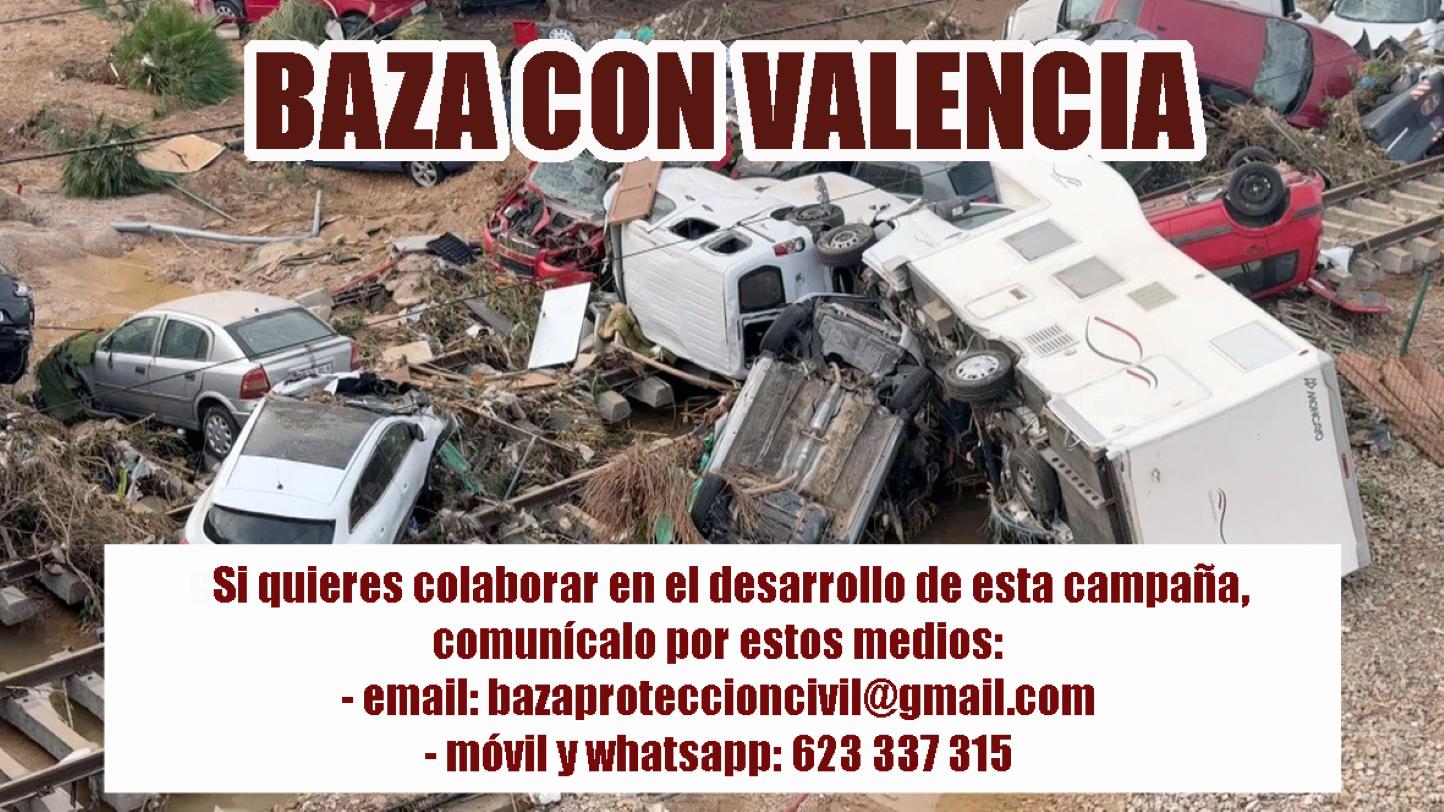 Comunicado de la Comisión de Trabajo de la plataforma “Baza con Valencia”. Bajo la denominación “Baza con Valencia”, la ciudad de Baza trabaja para organizar el envío de ayuda solidaria a los damnificados de la DANA de Valencia. Tras una primera reunión celebrada en la tarde del viernes 1 de noviembre en el Parque de Bomberos, en la que han participado representantes de varias entidades, asociaciones y empresas del municipio, se ha decidido constituir una Comisión de Trabajo para que sea ella la que determine la logística de esta iniciativa en la ciudad de Baza. Son varios los aspectos que hay que planificar para que la colaboración ciudadana sea posible y eficaz.