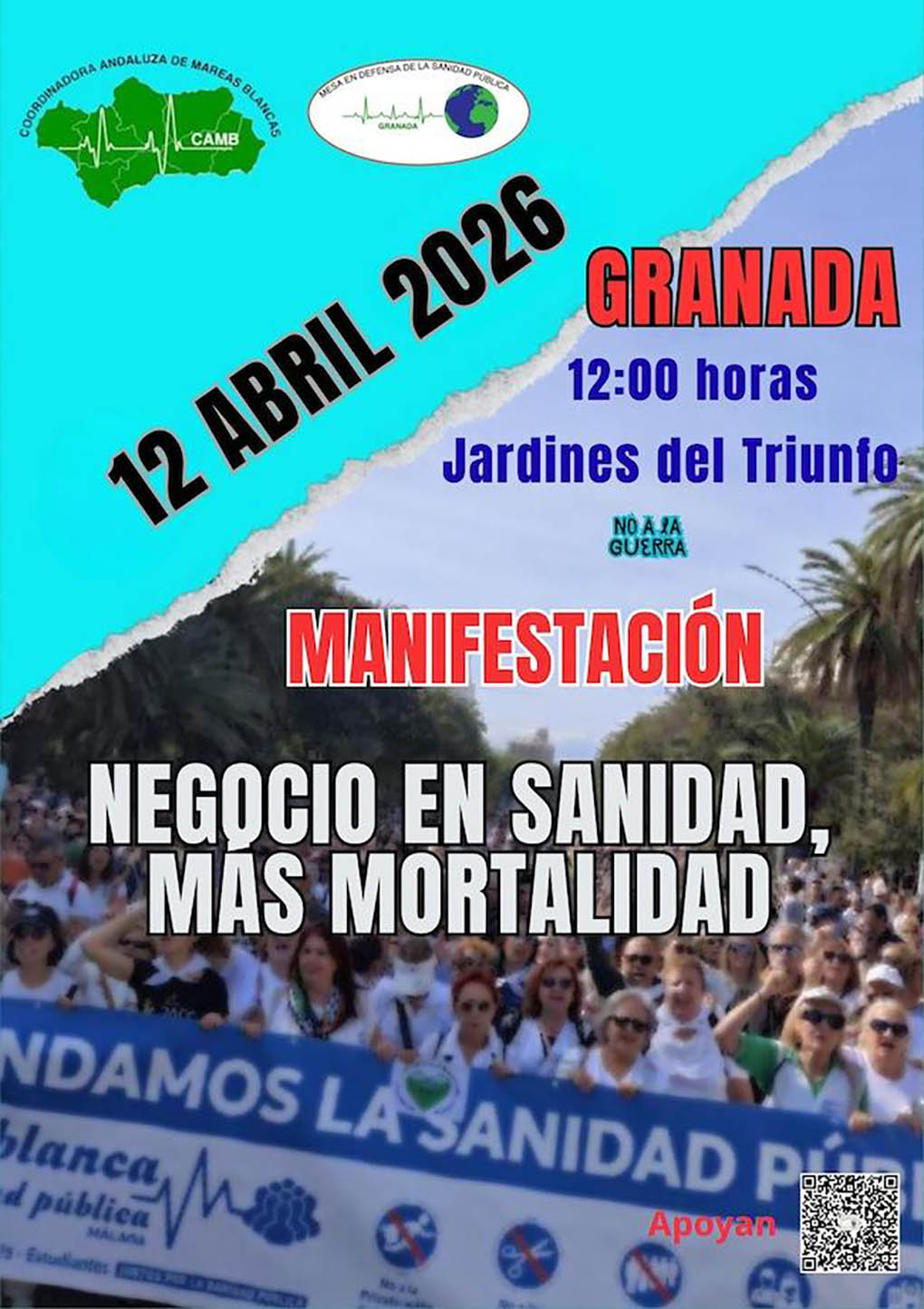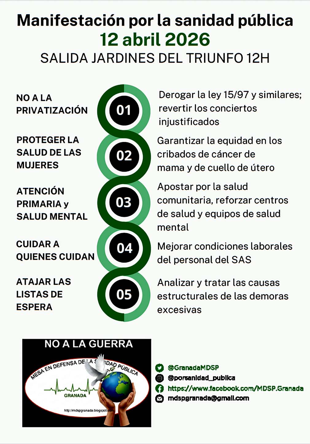 La cita está fijada para el próximo 12 de abril a las 12:00 horas, con salida desde los Jardines del Triunfo y final en la zona del Violón. La convocatoria se integra en una jornada de movilizaciones que tendrá lugar de manera simultánea en todas las capitales andaluzas, impulsada por la Coordinadora Andaluza de Mareas Blancas.