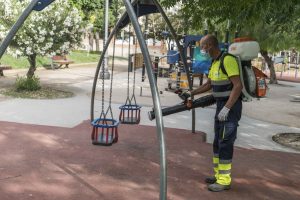 El concejal de Mantenimiento y Limpieza, José Antonio López Cañadas, ha detallado que en los espacios infantiles -que habitualmente tienen una elevada utilización de los aparatos por parte de los niños y niñas- se realiza a diario una limpieza con un atomizador y advierte “que ello no puede ser una excusa para relajarnos en cuanto a las medidas de prevención y autoprotección frente al COVID-19. Debemos seguir utilizando las mascarillas, también en los parques, respetar los aforos indicados en los carteles indicativos, vigilar que los pequeños se limpien siempre las manos con desinfectante antes y después de entrar a los parques y evitar que se lleven las manos a la boca, ojos o nariz”.