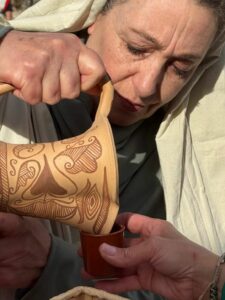 Uno de los momentos más celebrados fue el banquete funerario, en el que el público pasó de ser espectador a participante activo. Los asistentes pudieron realizar una libación con vino aromatizado siguiendo recetas de tradición íbera; degustar de forma simbólica uvas y alimentos asociados al ceremonial y conocer, mediante explicaciones didácticas, el significado del banquete como acto de unión entre la comunidad viva y sus antepasados.