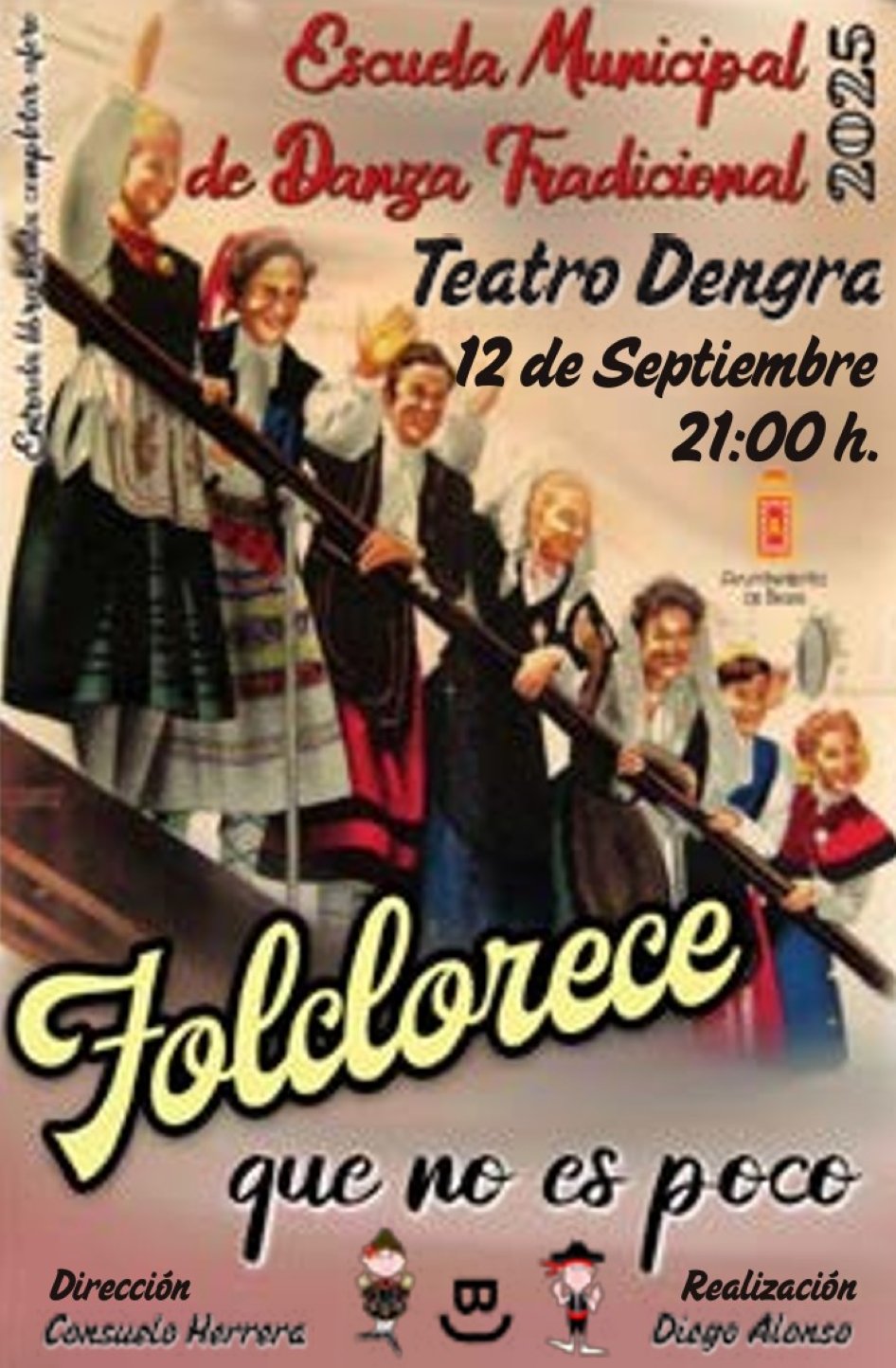 – 21:00 h. La Escuela Municipal de Danza Tradicional presenta el espectáculo de folclore y cine “Floclorece”. Dirigida por Consuelo Herrera Moya, la realización viene de la mano de Diego Alonso Gallardo. Entrada gratuita. Teatro Dengra.