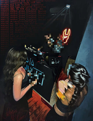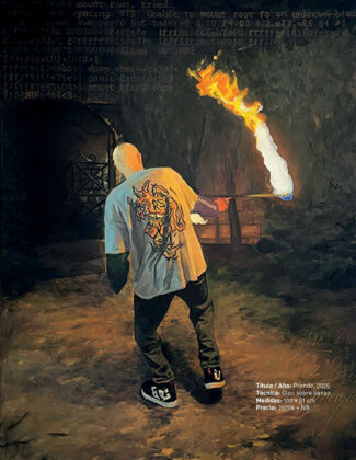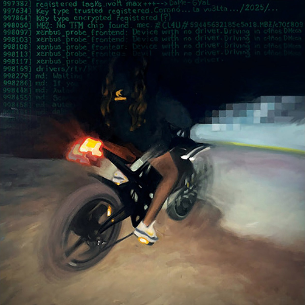 Marta Baena se hace presente en esta muestra con un proyecto que explora la tensión entre lo físico y lo digital en una sociedad donde lo virtual amenaza con sustituir a la experiencia real. Sus cuadros, inspirados en fotografías que capturan momentos efímeros, buscan transmitir instantes de libertad sin artificio y escenas espontáneas que no responden a una coreografía preconcebida. En ellos, el uso del píxel y de códigos visuales actúa como interferencia, como un ruido que obliga al espectador a cuestionar qué entendemos por “real”.