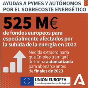 Se amplía hasta el 16 de octubre el plazo para pedir las ayudas para compensar los sobrecostes energéticos de electricidad y gas natural soportados durante 2022. Hasta el lunes 16 de octubre se ha ampliado el plazo para que las pymes y autónomos puedan presentar las solicitudes de las ayudas que la Junta de Andalucía ha puesto en marcha para compensar los sobrecostes energéticos de electricidad y gas natural soportados durante el año pasado. Se trata de una medida urgente y extraordinaria, dotada con 525 millones de euros procedentes de Fondos Europeos, e incluida en el Pacto Social y Económico firmado con los principales agentes económicos y sociales de Andalucía. Las condiciones para acceder a estas ayudas, que serán abonadas antes de que finalice este año, incluye a pymes y autónomos andaluces que se han visto especialmente afectados por el incremento excepcional del precio del gas natural y la electricidad debido a la crisis internacional de materias primas y suministros provocada por la guerra contra Ucrania, y cubre parte de los consumos efectuados entre el 1 de febrero de 2022 y el 31 de diciembre de 2022.