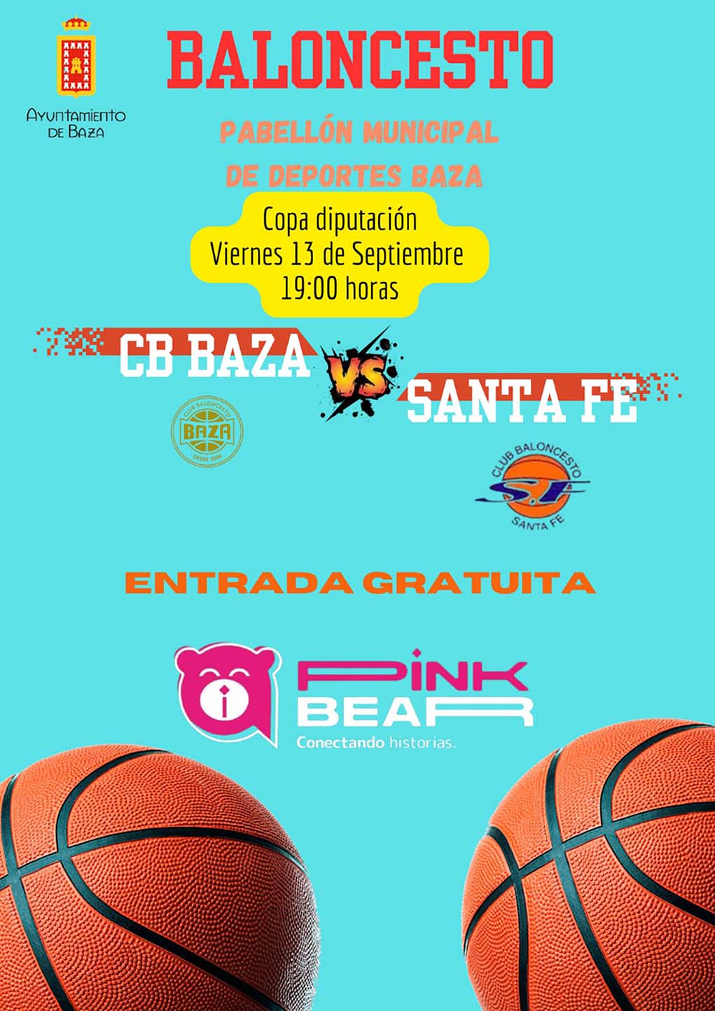 Esta tarde, en el Pabellón Municipal de Deportes, llega la Copa Diputación, con un atractivo Pink Bear CB Baza – Santa Fe. Hoy, viernes 13 septiembre, a las 19 horas tenemos la oportunidad de ver la primera toma de contacto de la plantilla del Pink Bear CB Baza, equipo de la Primera Nacional andaluza, recibiendo al CB Santa Fe, un equipo que este año saldrá a competición en la misma liga que el equipo bastetano, lo que hace pensar en un encuentro que se presenta muy apasionante.