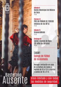 Actuaciones todas ellas que se encuadran en la programación elaborada desde el Área de Cultura del Ayuntamiento de Baza, las cuales se enmarcan en unas ya caducas Fiestas del bastetano ausente que nada conservan de las motivaciones que propiciaron su incorporación al calendario veraniego de nuestra ciudad y que actualmente son algo meramente testimonial.