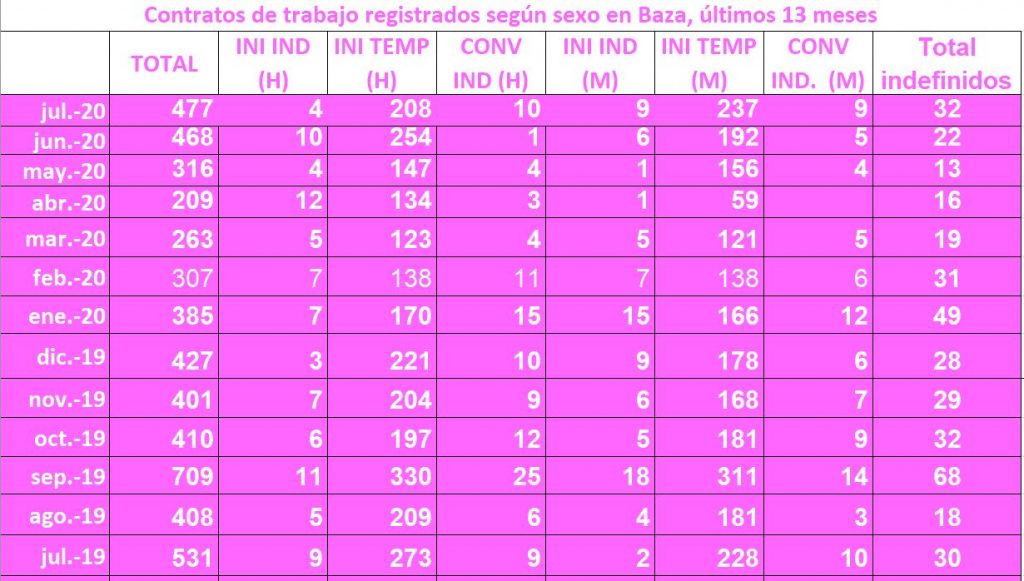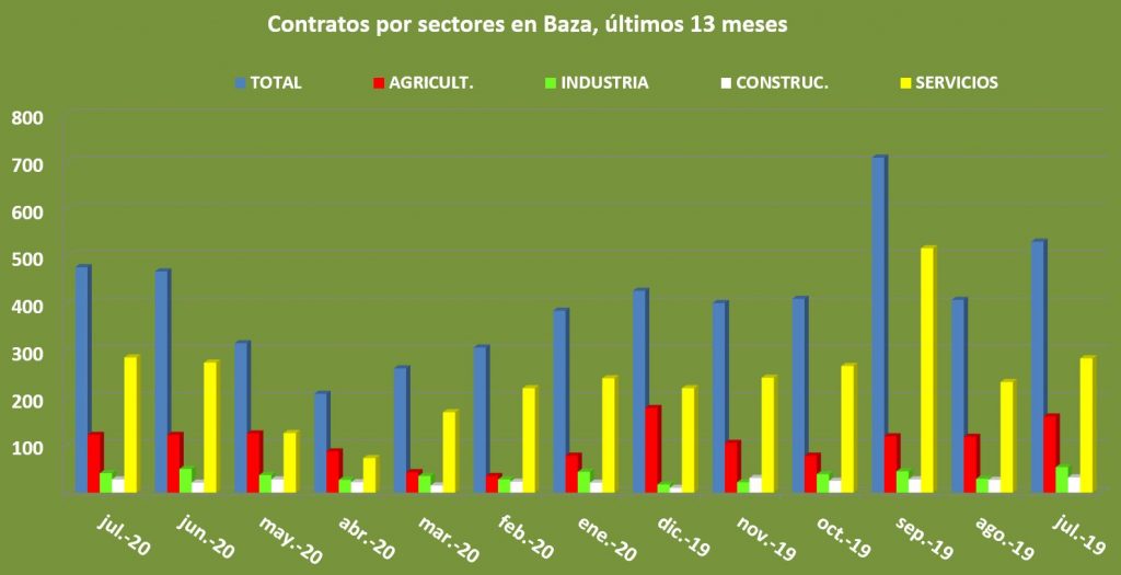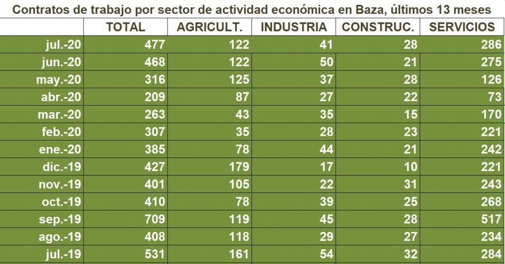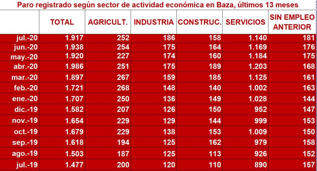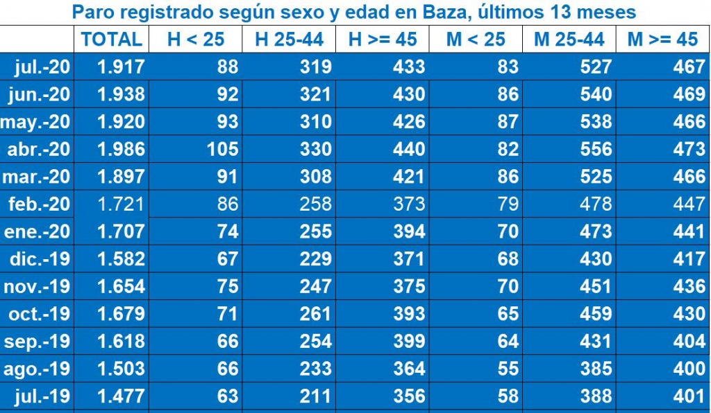 Pequeña disminución en las cifras del paro al finalizar el mes de julio. Un total de 21 personas menos es la cifra que han disminuido los parados en Baza, con la que se despedía el pasado mes de julio, siguiendo una tónica de pequeñas variaciones, desde la fuerte subida que se produjo el pasado mes de abril.