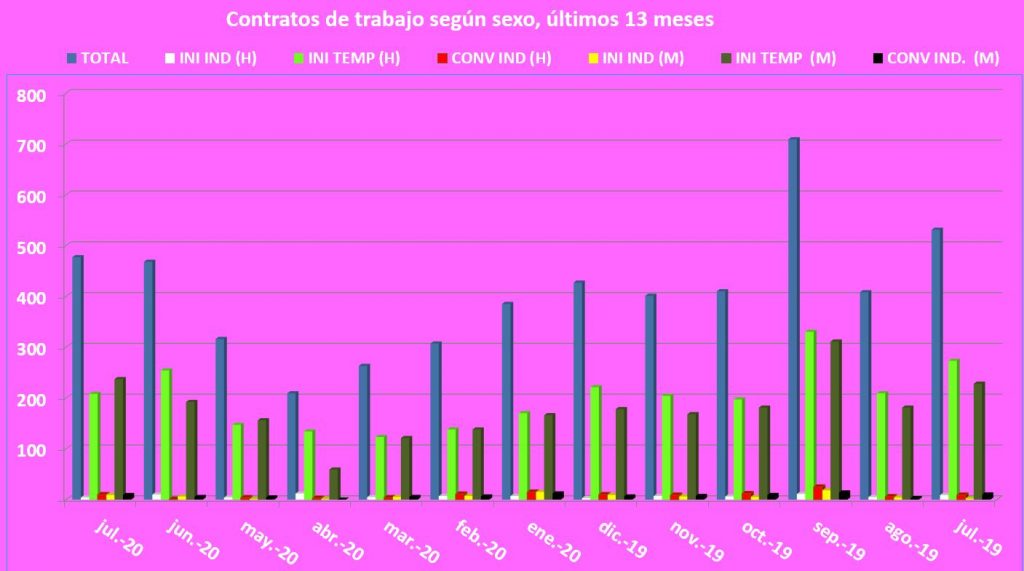 A continuación ofrecemos unos gráficos y tablas estadísticas de los últimos 13 meses, los cuales pueden ampliarse, al clicar sobre ellos, y reflejan el estado actual de la situación laboral en nuestra ciudad.