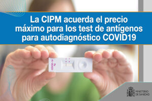La ministra de Sanidad anuncia que los test de antígenos de autodiagnóstico tendrán un precio máximo de 2,94 euros. La ministra de Sanidad, Carolina Darias, ha informado del acuerdo alcanzado esta mañana para limitar el precio máximo de los test de antígenos de autodiagnóstico de COVID-19 a 2,94 euros tras la realización de la reunión de la Comisión Interministerial de Precios de los Medicamentos.