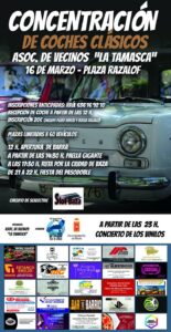 Mañana sábado, el barrio de la Tamasca acoge una concentración de coches clásicos y una jornada festiva con concierto de Los Vinilos y otras atracciones. La asociación de vecinos del barrio de La Tamasca nos comunica que mañana, sábado 16 de marzo, será un día de fiesta y actividades en el barrio, donde la Plaza Razalof será el punto central de la jornada, con la organización de diversas actividades.