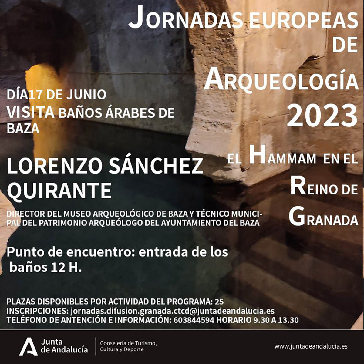 Entre las actividades programadas se incluye una vista a los Baños Árabes de Baza guiada por el Director del Museo Arqueológico de Baza y técnico municipal del Patrimonio Arqueológico del Ayuntamiento de Baza, Lorenzo Sánchez Quirante.