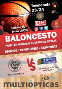 El Pabellón Municipal de Deportes de Baza albergará algo más que un partido, el próximo domingo a las 18.30 horas: Multiópticas Baza – Tíjola Baloncesto. Primera vez que se enfrentan estos dos clubes a nivel andaluz, con un Tíjola que visitará Baza con un potencial económico no acorde a esta categoría, lo que lo ha llevado a ser uno de los proyectos potentes de la liga con aspiraciones a todo.
