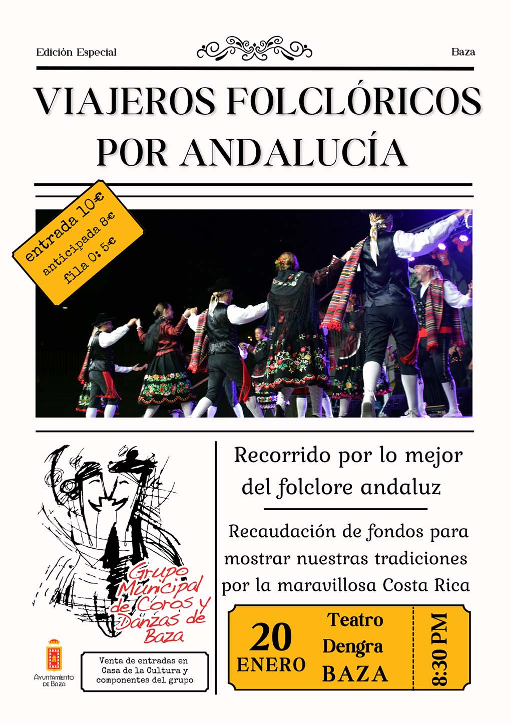 Mañana sábado, el Grupo Municipal de Coros y Danzas ofrecerá una actuación especial con la que recaudar fondos que ayuden a su actuación en Costa Rica. El Grupo Municipal de Coros y Danzas de Baza ha sido seleccionado para representar a nuestro país y realizar una serie de actuaciones entre las que está un festival Internacional que se celebrará en este país centroamericano.