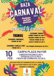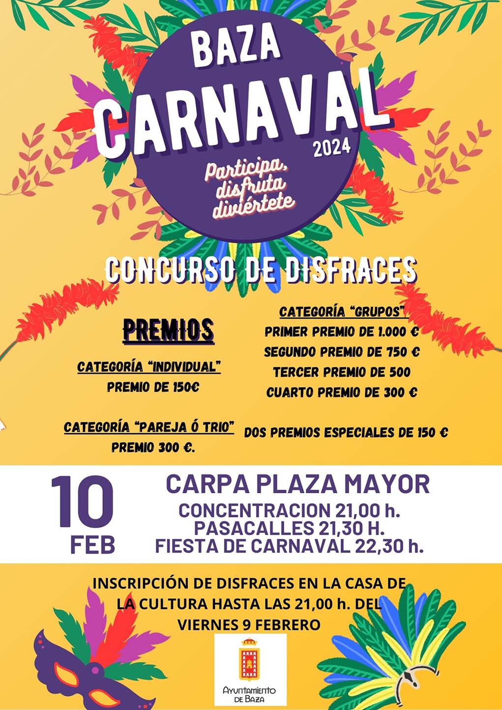 El Concurso de Disfraces del Carnaval de Baza, que se celebrará el sábado 10 de febrero y que ya tiene abierto su periodo de inscripción, repartirá este año 3.300 euros en premios. Para animar aún más esta fiesta, el Ayuntamiento vuelve a poner en marcha el Concurso de Disfraces de Carnaval, en el que se van a repartir nada menos que 3.300 euros en premios.