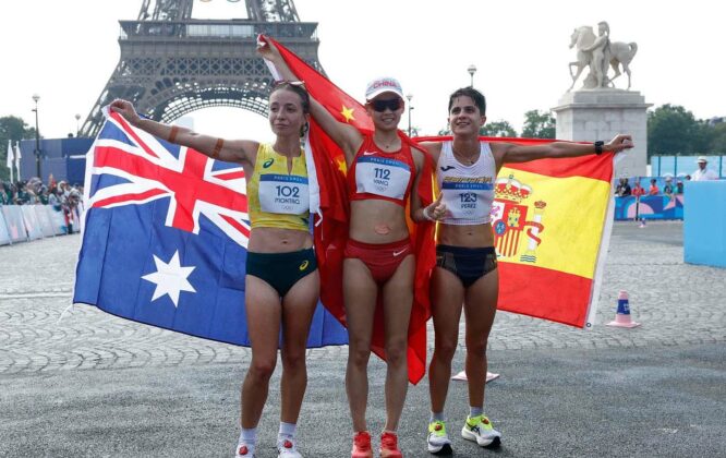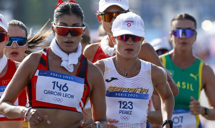 En cuanto a la carrera de ayer, María Pérez salía acompañada por Laura García-Caro y Cristina Montesinos, que completaban el potente equipo español. Con la primera de ellas se colocó, desde el inicio, en el grupo cabecero que, poco a poco, fue dejando atrás a numerosas rivales. El quinto kilómetro se pasaba en 21:34, con la china Jiayu Jang al frente y con corredoras como la última campeona olímpica, la italiana Antonella Palmisano y  la doble campeona mundial en 2022, la peruana Kimberly García León. En el kilómetro 10, María y Laura seguían en el grupo de cabeza, con Yang siempre en cabeza, y un tiempo de 43:06 para la primera de sus once componentes.