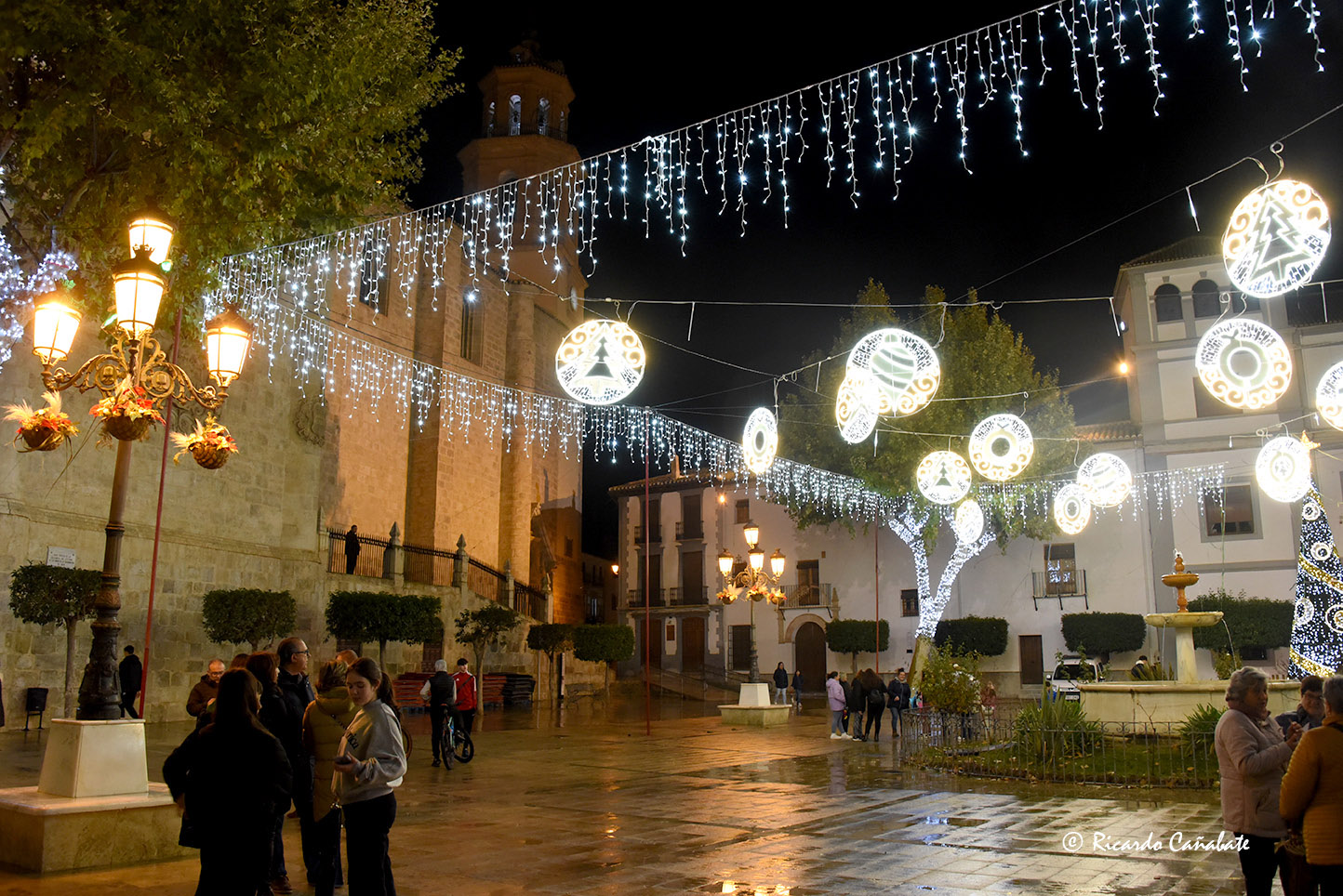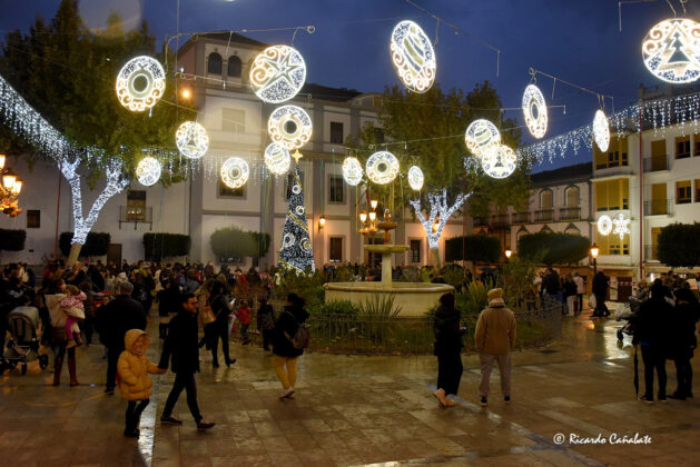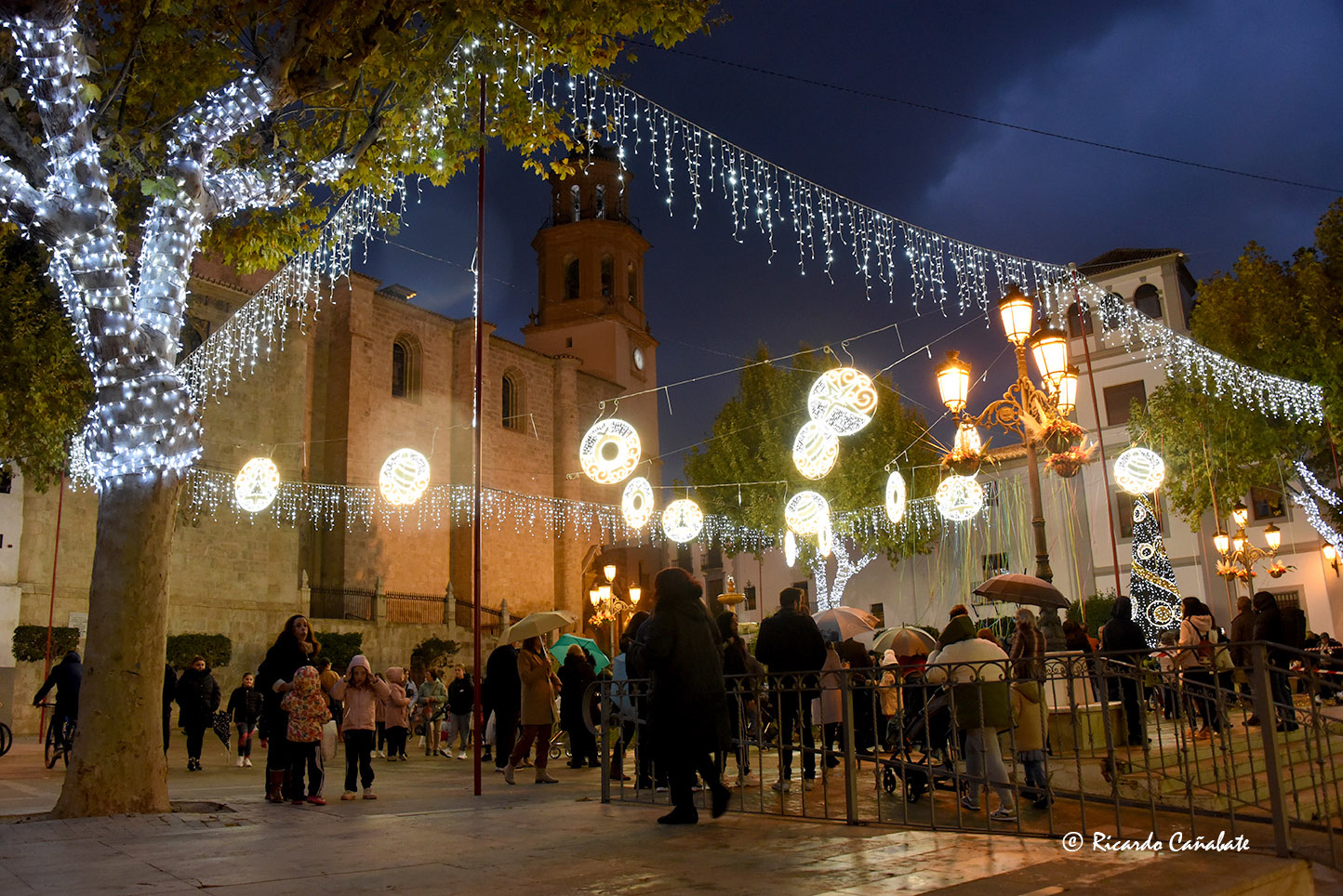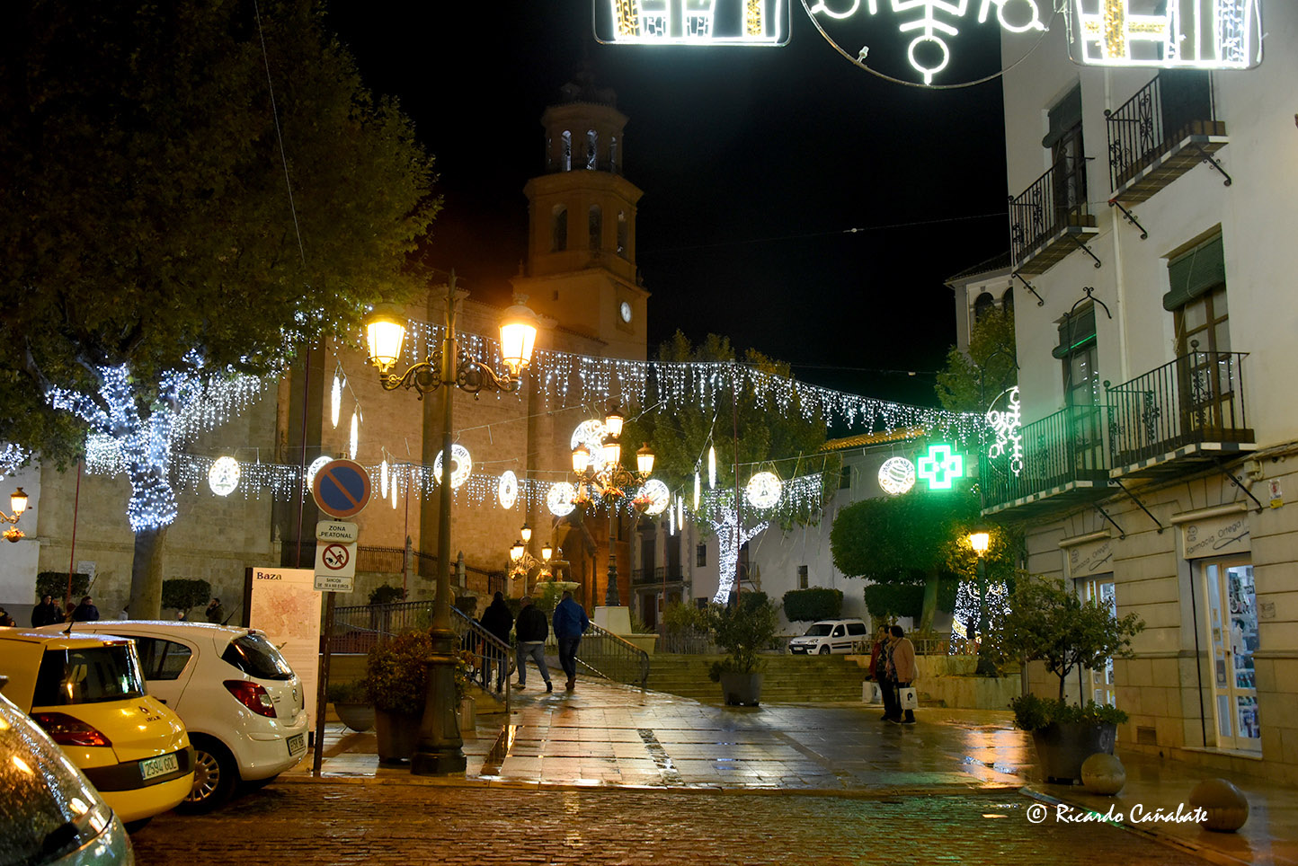 La iluminación extraordinaria inauguraba ayer en Baza la campaña prenavideña, con la lluvia como invitada inesperada. Una lluvia tan deseada como capaz de aparecer en el momento en que la Plaza Mayor registraba una notable presencia de personas y que, a pesar de su escasa duración, sí que fue capaz de desalojar la plaza y acabar retirando a un público que ya no se incorporó a las actividades previstas.
