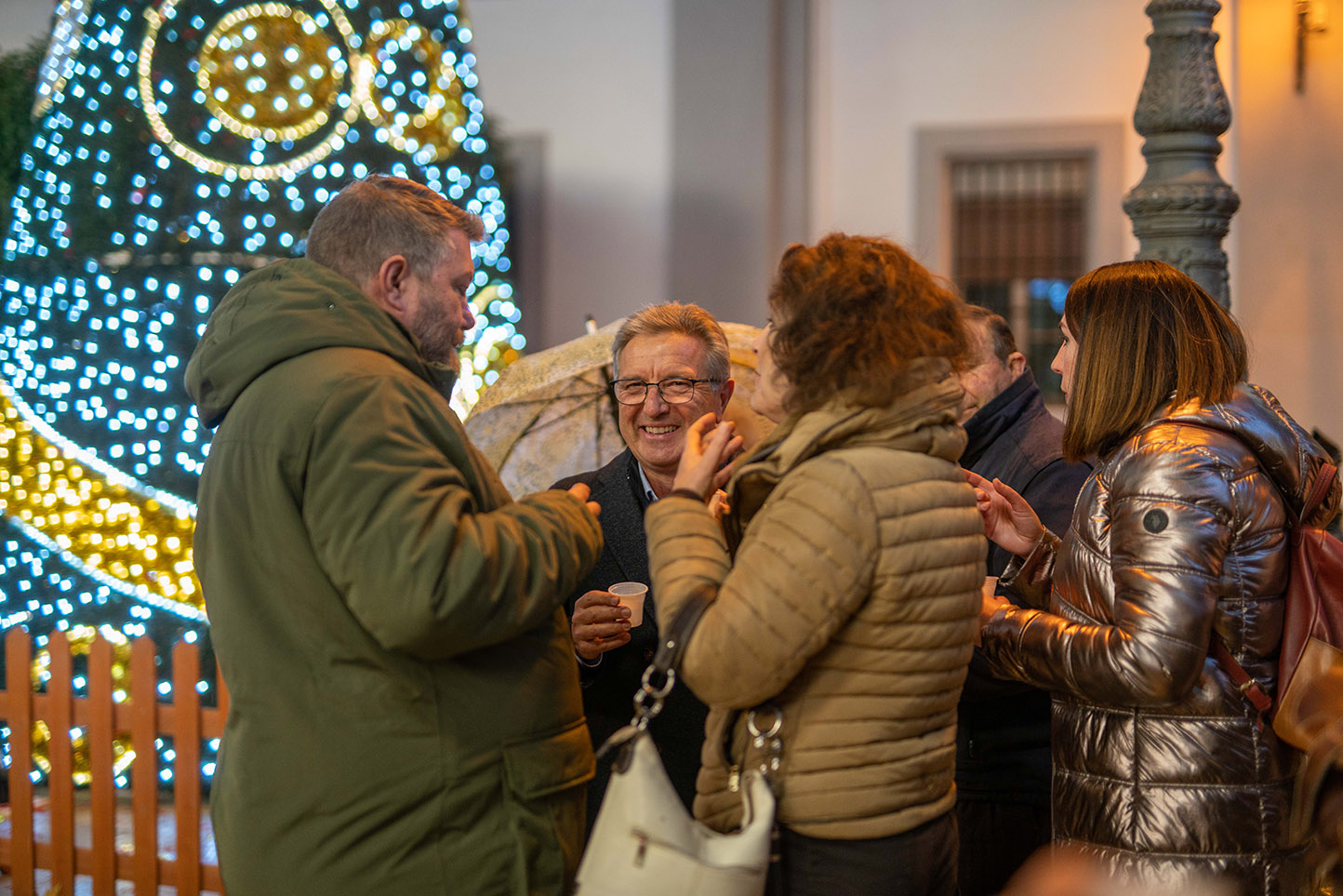 Manolo Gavilán dirigió unas palabras en sintonía de las fechas en las que ya nos metemos de lleno y deseando lo mejor a toda la ciudadanía, compartiendo una invitación apropiada con estas fechas, que pronto se vio interrumpida por la presencia de la lluvia y que acabó dejando una Plaza Mayor solitaria, con un grupo de personas refugiadas en la casa Consistorial, mientras que fueron más los que optaron por marcharse a sus domicilios, donde no fueron pocos los que se dispusieron a disfrutar del fútbol televisado, con una selección nacional que también hizo sufrir, pero que ya no retornaron a la Plaza Mayor.