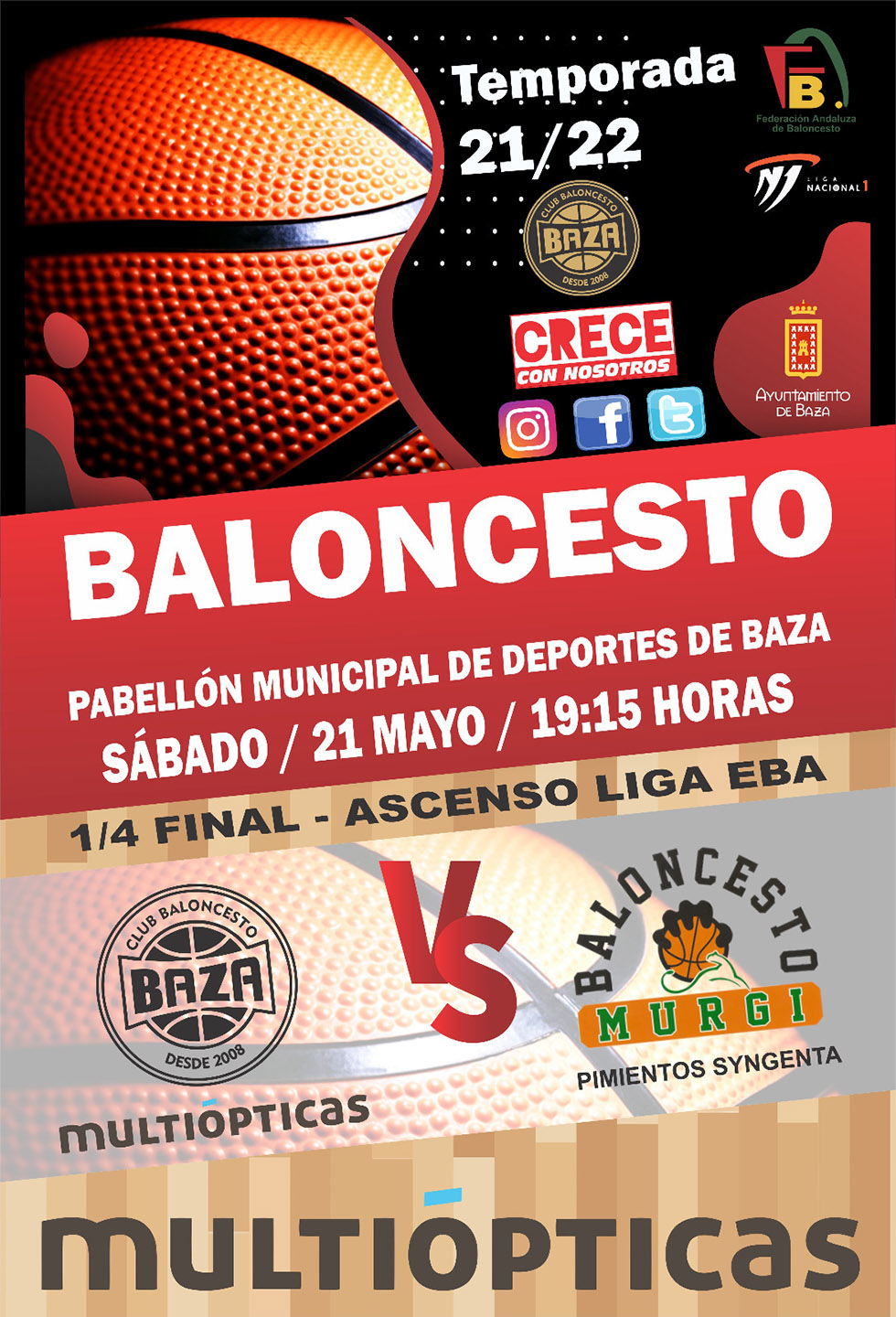 Un fin de semana que nos trae al equipo de Primera nacional disputando, el próximo sábado 21 de mayo, las 19.15 horas, los cuartos de final de la Fase de Ascenso, en la que se recibirá a un auténtico equipazo como el Pimientos Syngenta – Baloncesto Murgi, una formación que va a por el ascenso y que vendrá a Baza arropados por un centenar de aficionados que se desplazarán a nuestra ciudad para brindarles todo su apoyo en ese empeño.