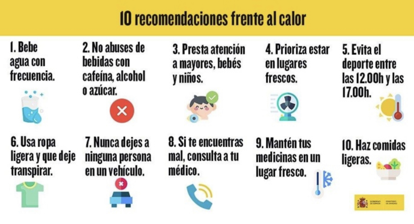 Desde el Ministerio de Sanidad, se insiste en una serie de recomendaciones para minimizar los daños, que conforman el decálogo de recomendaciones generales: