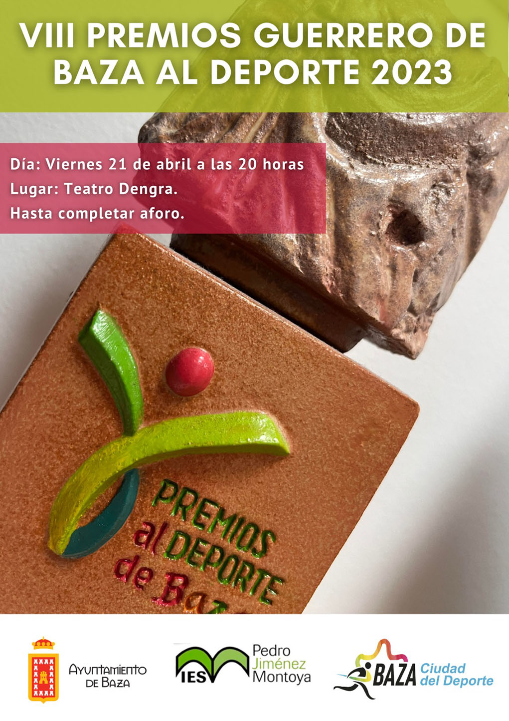 Todo listo para VIII Gala de los Premios Guerrero de Baza al Deporte que organizan el Ayuntamiento y el IES Jiménez Montoya, esta tarde, a las 20h en el Teatro Dengra. El Teatro Dengra acoge este viernes 21 de abril a partir de las 20h la VIII Gala de los Premios Guerrero de Baza al Deporte que organizan el Ayuntamiento y el IES Jiménez Montoya, aunque para quien no pueda asistir presencialmente también se ofrece la posibilidad de seguir la emisión en directo a través del canal YouTube del Ayuntamiento.