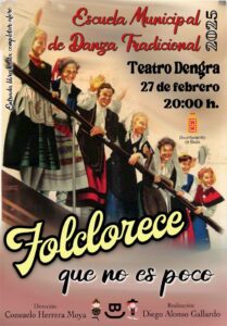 La Escuela Municipal de Danza Tradicional, compuesta por más de 60 componentes, desde 3 hasta 45 años, se subirán a las tablas del Teatro Dengra para interpretar algunas de nuestras danzas durante, aproximadamente, 100 minutos.
