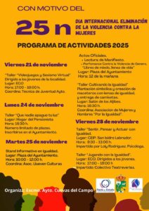 - Acto institucional – 25 de noviembre | 12:00 h. Plaza junto a la Biblioteca Municipal.