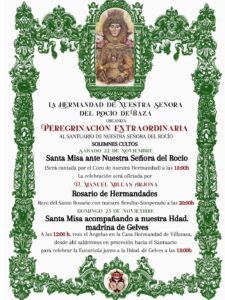 El sábado se desarrollará la jornada central. A mediodía, la hermandad se dirigirá en procesión al Santuario para participar en la misa dedicada a la Virgen del Rocío, que será cantada por el coro de la propia Hermandad bastetana. Será uno de los momentos más solemnes del fin de semana, acompañado en la tarde por la salida del Simpecado para el Santo Rosario de Hermandades, un acto que congregará a numerosas corporaciones en un clima de fe y comunidad.