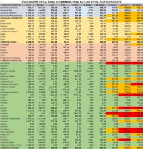 Los 37 casos validados ayer en Baza nos llevan ya a superar la tasa de 1.000 contagios por 100.000 habitantes. Estaba cantado y el cambio empezó a confirmarse cuando minutos antes de las 10 y media de la mañana recibíamos la información del AGS Nordeste de Granada, con los datos de los nuevos casos validados en el día de ayer en el territorio de su ámbito y que son los siguientes: