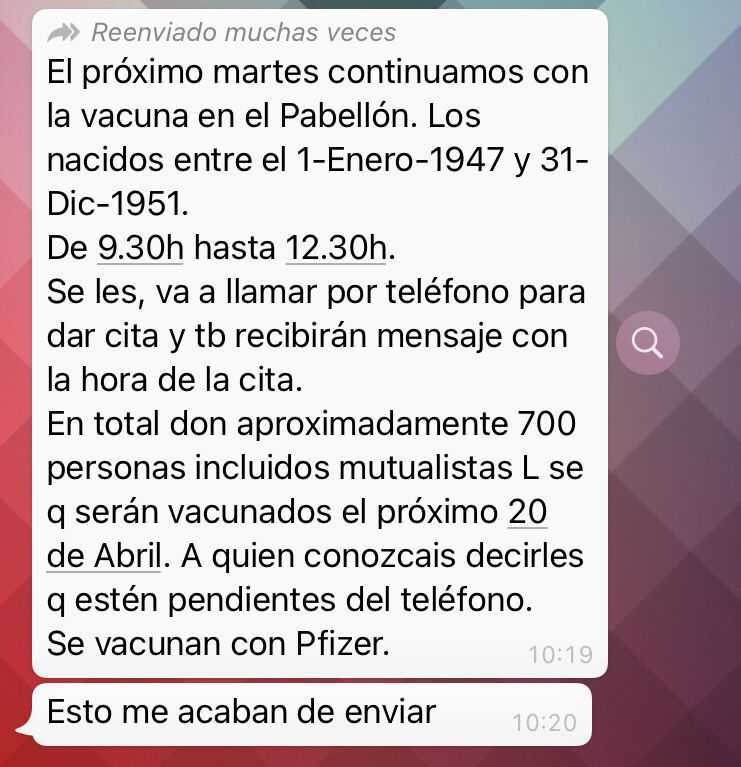 En los últimos días, no sabemos si porque no abren los bares por la tarde, vuelven a aparecer personajillos de esta estirpe. Lo mismo los hay que dedican sus supuestos esfuerzos e inventos a perjudicar el trabajo de oros, como los que se dedican a inventarse situaciones para citar a la gente a que acuda a vacunaciones o cribados que no existen, que idean otras historias parecidas. Desde luego, también habría que mirar en qué saco metemos a quienes se fían de todo lo que les llega, sin aplicar el más mínimo cuestionamiento crítico, sobre todo cuando se trata de asuntos médicos o similares que tienen unos canales más que definidos y concretos.
