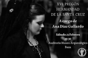 En el caso de esta hermandad, que tiene su sede canónica en la Parroquia del Sagrario / Iglesia Mayor, este año se alcanzará ya la XVI edición de este emblemático acto, el cual tendrá lugar mañana sábado, día 25 de febrero, a las 19:30 horas, en el Auditorio del Museo Arqueológico Municipal y estará a cargo de Ana Díaz Gallardo, maestra de profesión y camarera de María Santísima al pie de la Cruz.
