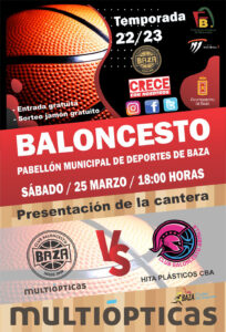 Importante partido el de mañana para el Multiópticas Baza al jugarse en el Pabellón bastetano sus opciones para meterse en los play-off. Partido vital del Multiópticas Baza para aspirar a jugar los play off de ascenso, el que se disputará mañana sábado en el Pabellón Municipal de Deportes de Baza.