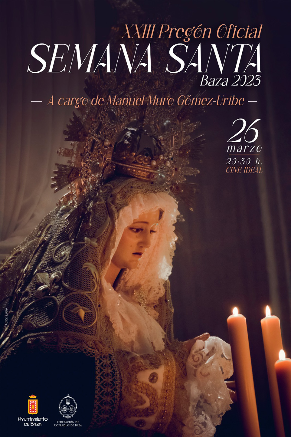 El domingo 26, previo a la Semana Santa, Manuel Muro Gómez-Uribe pronunciará el Pregón Oficial, en el Salón Ideal. Un Pregón Oficial cuya organización corresponde a la Federación de Cofradías y que tendrá lugar a las ocho y media de la tarde del domingo 26 de marzo, en el Salón Ideal, en un año en el que ya se dejan atrás los tiempos de pandemia y la Semana Santa tiende a recuperar la normalidad, si bien desde la provisionalidad que supone que la Federación esté dirigida por una junta Gestora coordinada por el Consiliario Manuel Millán, como coordinador, al frente de todos los Hermanos Mayores, entre los que hay también algún caso de actuación en funciones.