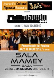La Sala Mamey acoge el concierto presentación del JazzTeDigo Festival 2019 con Funkdacion, el próximo viernes 24 de mayo, a partir de las 23:30 h. Hoy viernes, 24 de mayo, tendrá lugar un concierto de presentación en la Sala Mamey, en el que se dará a conocer, con toda profundidad, el conjunto de todos los grupos que visitarán el JazzTeDigo Festival 2019, al ritmo de la mejor música funk, así como de las diferentes alternativas que encontraremos los días 28 y 29 de junio en la Plaza Mayor de Baza.