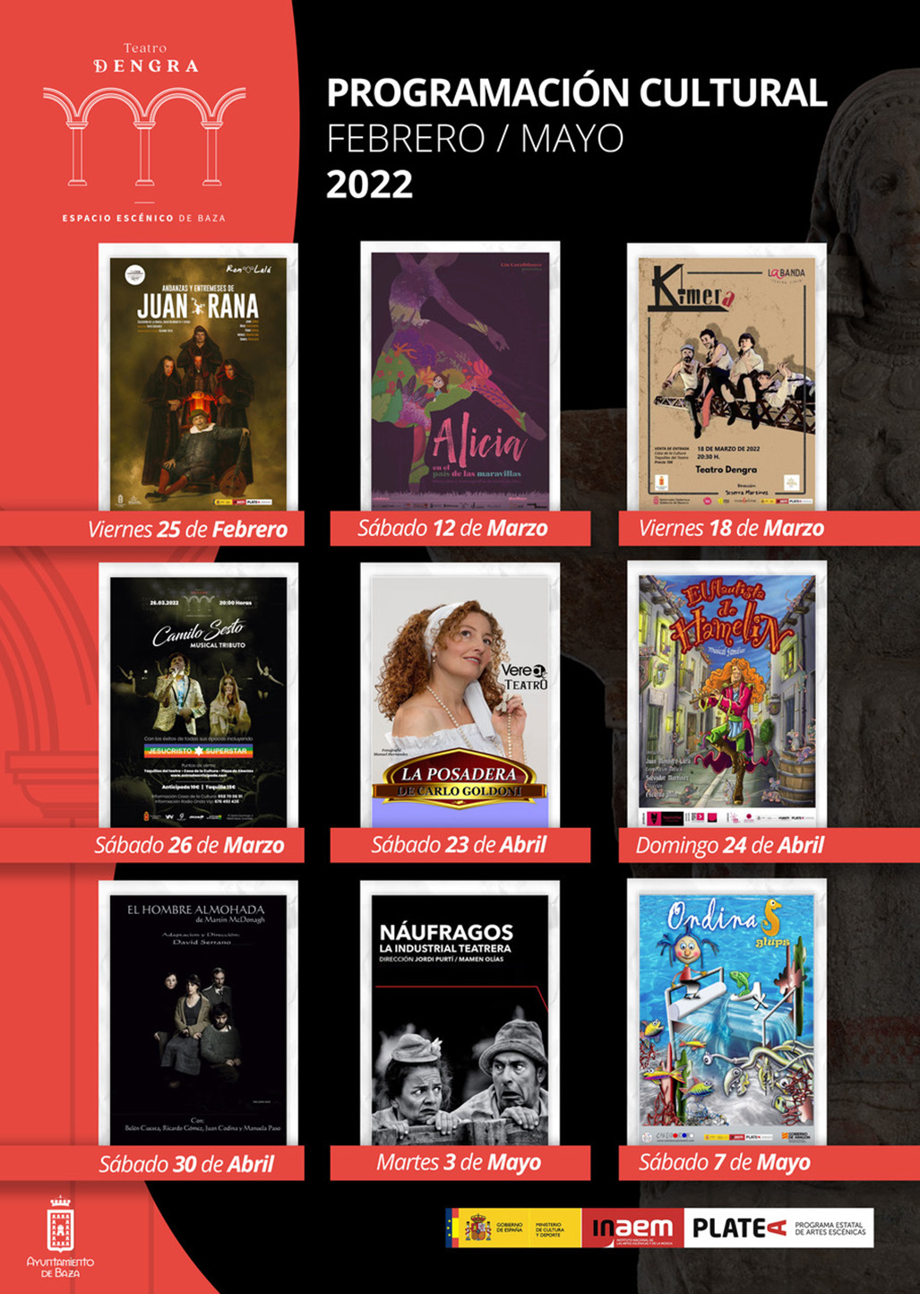 Nueve propuestas culturales de primera línea entre febrero y mayo, recopiladas en un programa de mano y con la posibilidad de adquirir bonos. El maravilloso espacio cultural que ofrece en Baza el Teatro Dengra se llena de propuestas de primera línea con una programación que incluye 9 espectáculos de teatro, danza, música y circo entre los meses de febrero y mayo (uno de ellos al aire libre, en la Plaza Mayor).