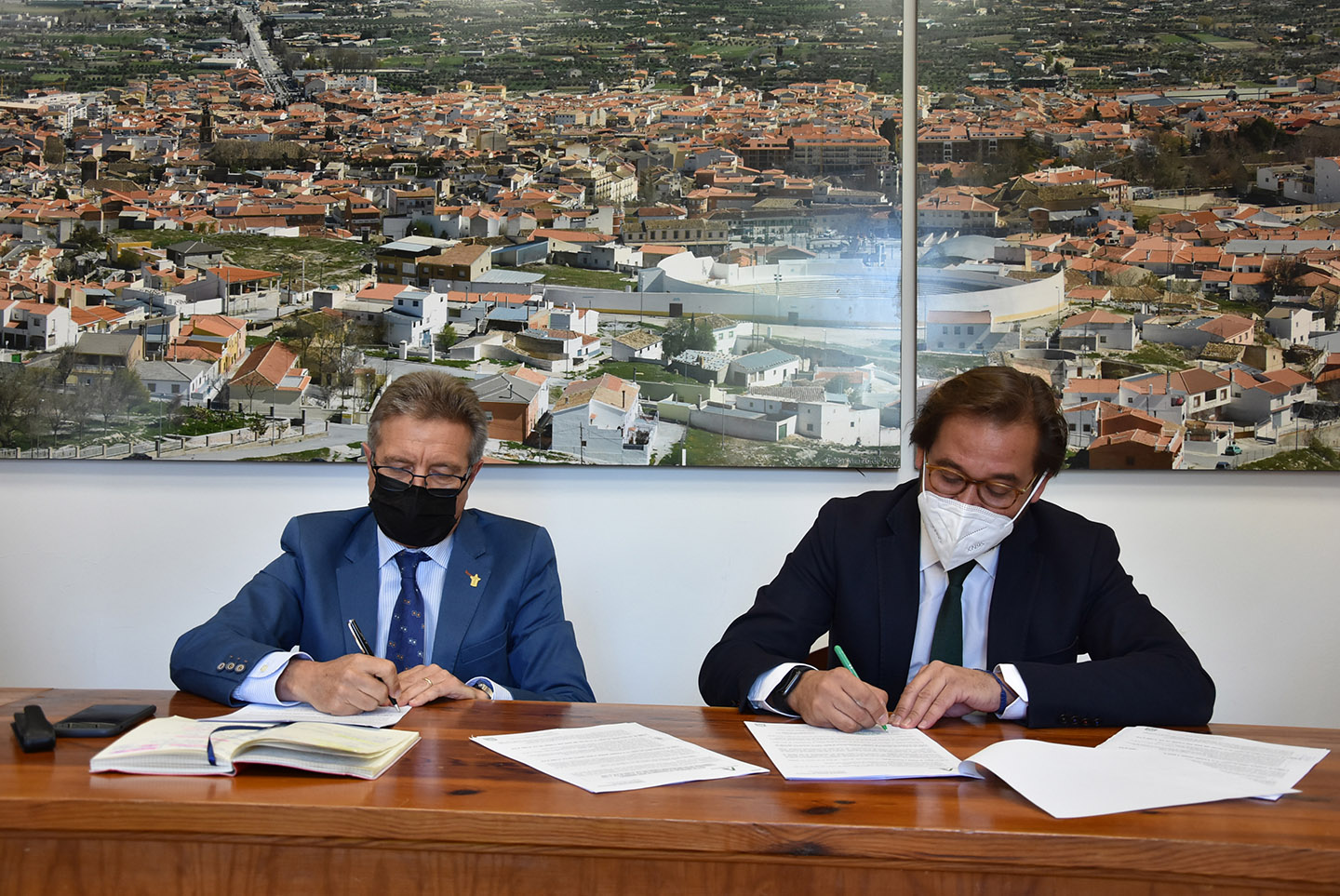 Formalizada la firma del acta de cesión de las travesías desde la entrada de la A-92 hasta intersección con carretera de Granada y de la rotonda de carretera de Murcia con Corredera. El alcalde de Baza, Manolo Gavilán, y el delegado provincial de Fomento, Infraestructuras, Ordenación del Territorio, Cultura y Patrimonio Histórico en Granada, Antonio Jesús Granados, han formalizado hoy jueves en el Ayuntamiento el acta de cesión de las travesías de Baza Carretera A-92NR2 (ramal a Baza Norte) del punto kilométrico 0 al 1’740 y de Carretera GR-780 (de Baza por calle Agua) del punto kilométrico 0 al 0’500. De esta forma, la delegación cede la titularidad de ambos tramos de carretera al Ayuntamiento.