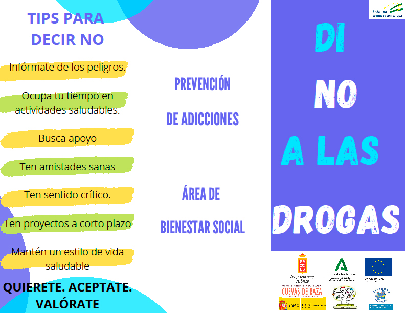 Campaña informativa y de prevención con motivo del Día Internacional de la Lucha Contra el Uso Indebido y el Tráfico Ilícito de Drogas 2021. El Ayuntamiento de Baza ha puesto en marcha una campaña informativa y de prevención con motivo del Día Internacional de la Lucha Contra el Uso Indebido y el Tráfico Ilícito de Drogas que se conmemora este sábado 26 de junio.